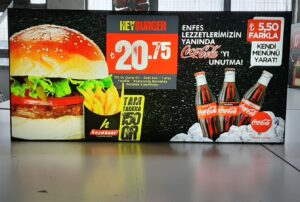Dijital ışıklı kumaş, ışık geçirgenliği özelliği sayesinde arka plan aydınlatmalı tabelalarda geleneksel basılı duratrans ve pleksiye karşı mükemmel bir alternatif haline gelmiştir. Arkadan aydınlatılmış kumaş grafiğinin kenarları silikon ile dikilerek ve çerçevesiz bir ışık kutusuna sıkı bir şekilde gerilir. Aydınlatılmış kumaş görüntüsünü pürüzsüz, çerçevesiz bir görünüm ile elde edebilirsiniz. Gelişmiş ışıklı baskı sistemlerimiz ile yoğun renklerde basılmış görseller, netlik ve renk kontrastında mükemmellik yaratmaktadır.